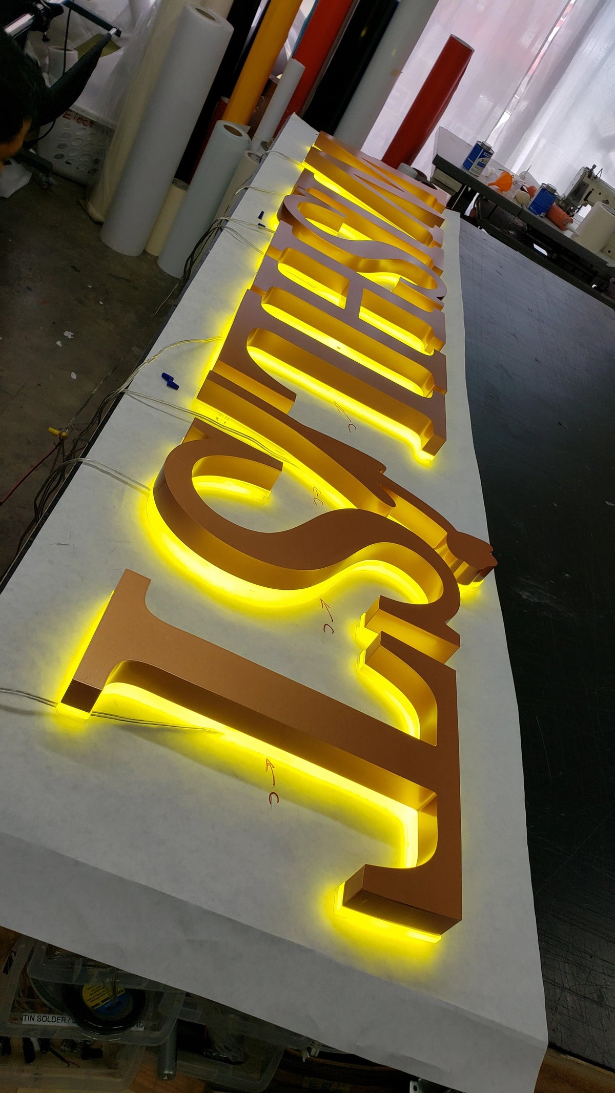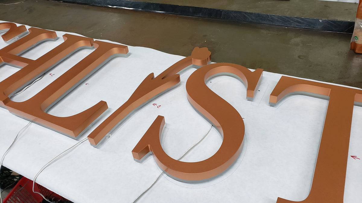 Painted Metal Letters with Backlit Effect